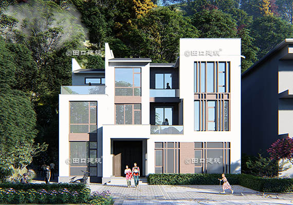 占地面積 288.4㎡ 土建造價 120.0萬 白色現代別墅